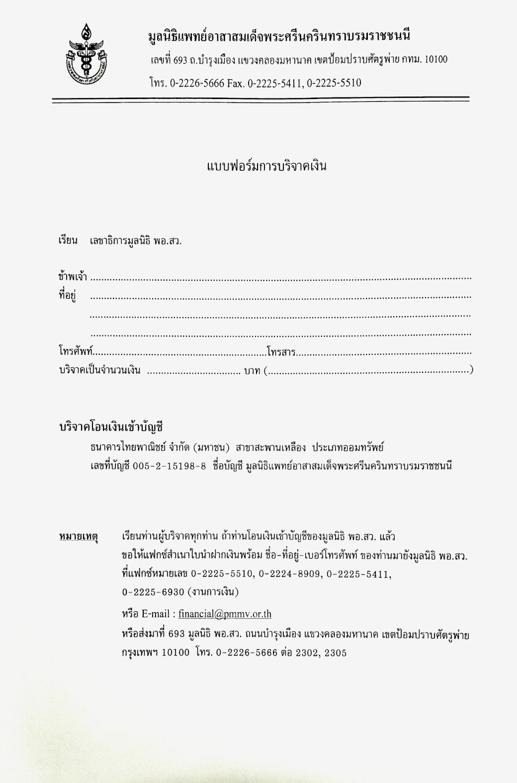 เอกสารการจัดตั้งมูลนิธิแพทย์อาสาสมเด็จพระศรีนครินทราบรมราชชนนี (พอ.สว.)