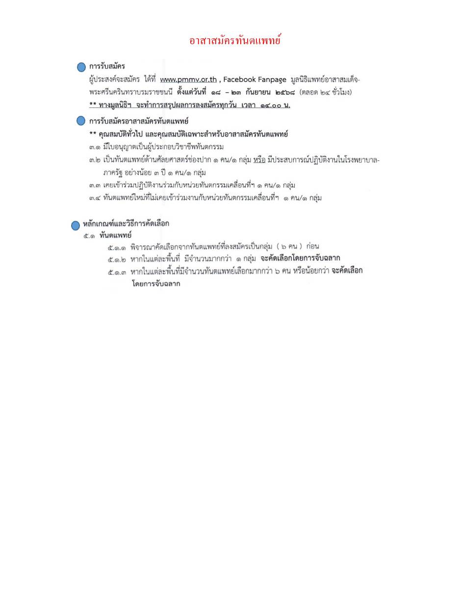 หมายเหตุ: คุณสมบัติและหลักเกณ์และวิธีคัดเลือกอาสาสมัครทันตแพทย์ ตามรายละเอียดแนบ
