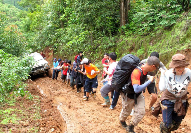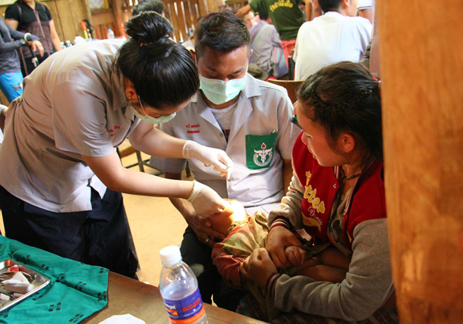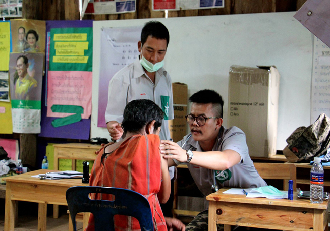 ในพื้นที่มีขาวไทยภูเขาหลายเผ่าอาศัยอยู่ถึงแม้จะมีถนนเข้าไปถึงหลายพื้นที่แล้วแต่ยังเป็นดินโคลน และบางหมู่บ้านไม่มีถนนมีเฉพาะ ทางเดินเท้าของชาวบ้านทุกฤดูกาลโดยเฉพาะฤดูฝนยานพาหนะจะเข้าไปไม่ถึงประชาชนจะขาดการติดต่อจากภายนอกประชาชนมีการ จึงเกิดหน่วยแพทย์เดินเท้าขึ้นโดยได้รับการสนับสนุน อาสาสมัครจากส่วนกลาง ส่วนภูมิภาค และอาสาสมัครในพื้นที่ร่วมกันปฏิบัติงาน รักษาผู้ป่วยที่ไม่สะดวกเดินทางมารักษาที่โรงพยาบาลโดยเฉพาะฤดูฝน